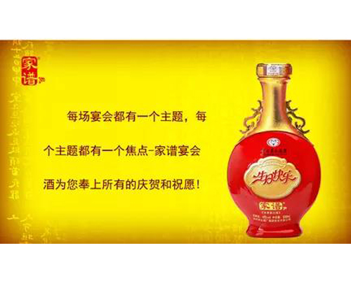 “家譜酒”源于茅臺但又獨樹一幟,極具特色,適宜消費者在各種場合宴請最尊貴的客人,以及各種層次的公務宴請。此外,家中收藏一款“自己家的酒”也不失為一種自豪。總之,一款家譜酒可以使消費者宴飲的同時領略到人生以外的很多奧妙!2006年是貴州家譜酒業有限公司的豐收年。家譜酒應邀參加了“2006年人民大會堂·紀念毛澤東逝世30周年座談會”并被指定為該座談會的專用酒;經中國詩酒文化協會嚴格審核,榮獲“最具價值的中國十大文化名酒品牌”榮譽稱號。鑒于貴州家譜酒業良好的社會公眾形象及產品的優良品質,被指定為第二界杰出華商大會(人民大會堂、釣魚臺)指定用酒。“世界華人慈善之夜”指定用酒。